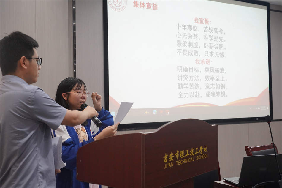 鏗鏘有力的誓言在報告廳內(nèi)回蕩,彰顯出理工學(xué)子們決勝高考的堅定信念。