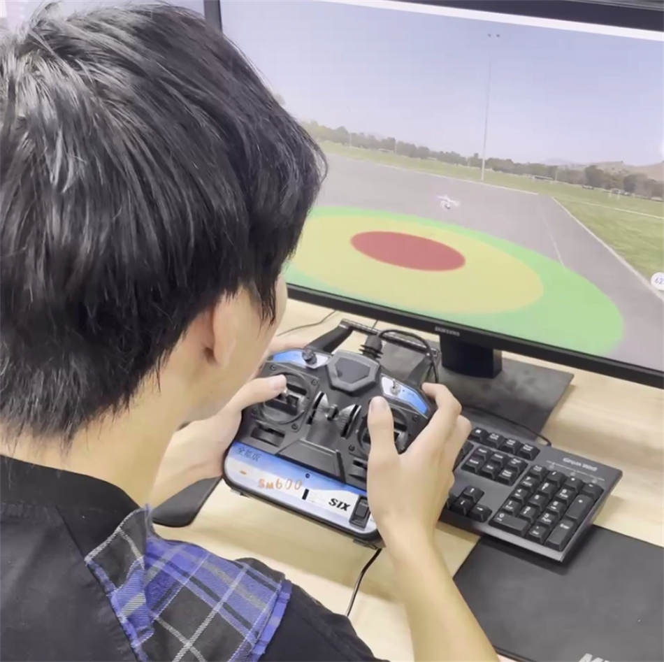 實(shí)訓(xùn)室內(nèi),學(xué)生們手握標(biāo)有“Sm600 SIX”字樣的專業(yè)遙控器,目光緊緊鎖定電腦屏幕——屏幕上,虛擬無人機(jī)在模擬機(jī)場跑道旁的靶標(biāo)區(qū)域穩(wěn)定懸停,紅色靶心清晰可見。指導(dǎo)教師結(jié)合“八面懸停”等高難度科目,現(xiàn)場演示參數(shù)校準(zhǔn)、姿態(tài)調(diào)整等調(diào)試技巧。學(xué)生小李在教師的指導(dǎo)下,經(jīng)過多次模擬操作,成功完成了虛擬無人機(jī)的懸??刂婆c軌跡修正。他分享道:“模擬器將抽象的飛行原理轉(zhuǎn)化為直觀的視覺反饋,讓我們在安全的虛擬環(huán)境中反復(fù)練習(xí),既加深了對操作邏輯的理解,也有效降低了未來實(shí)飛時的風(fēng)險。”據(jù)了解,小李同學(xué)當(dāng)天單次模擬飛行時長達(dá)8分鐘,總訓(xùn)練時長累計超過1小時20分鐘,充分體現(xiàn)了模擬訓(xùn)練的高強(qiáng)度與針對性。