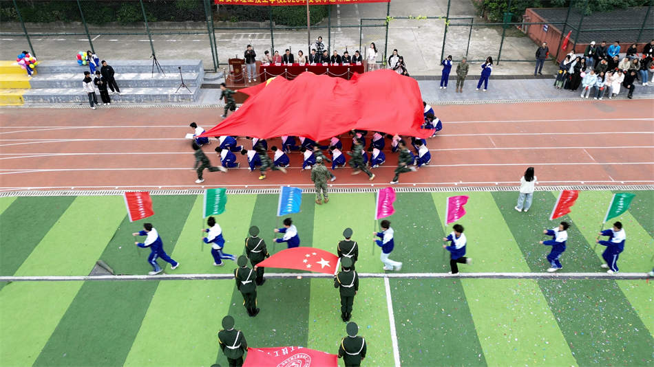 入場(chǎng)式結(jié)束后,全體師生肅立。國旗護(hù)衛(wèi)隊(duì)踏著正步而來,盡管寒風(fēng)吹紅了面孔,但目光依舊堅(jiān)定。當(dāng)《義勇軍進(jìn)行曲》響起,鮮艷的五星紅旗冉冉升起,師生們行注目禮,國歌聲在操場(chǎng)回蕩。“升旗不僅是儀式,更是讓學(xué)生記住,無論學(xué)什么專業(yè),愛國都是底色。”一句樸實(shí)的話,道盡了思政教育與專業(yè)培養(yǎng)的深度融合。