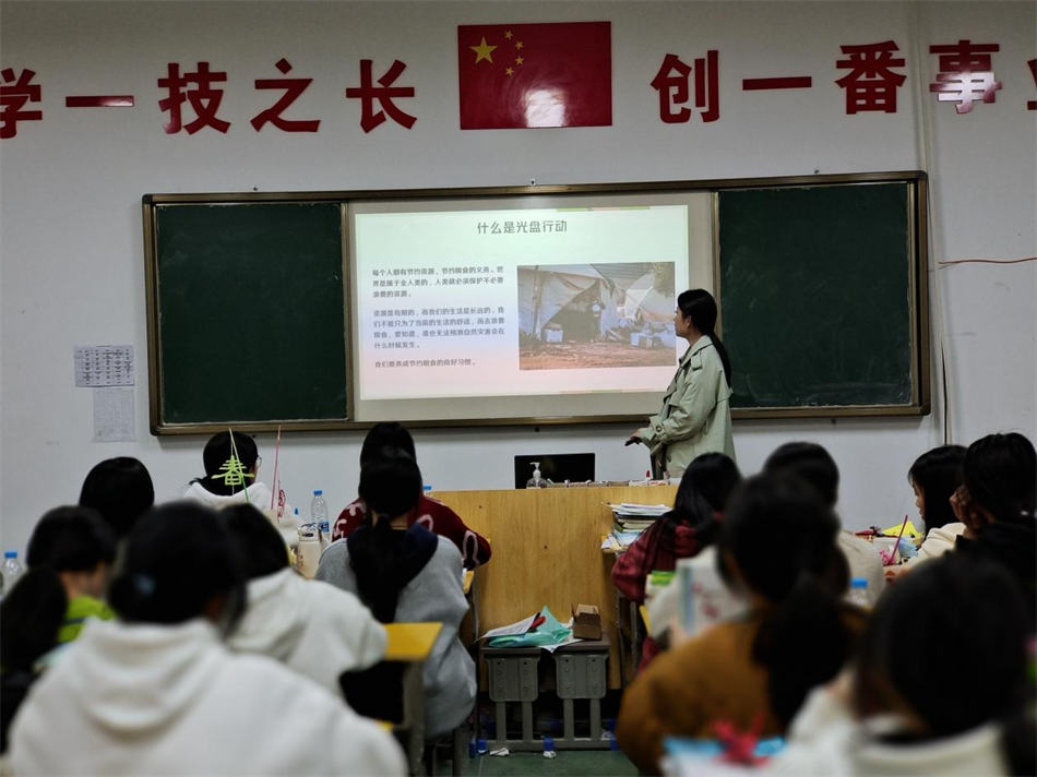 學工處利用集會時間,讓同學們反思自己:生活中是否扔掉只吃了幾口的饅頭,是否倒掉只吃了幾口的飯菜?也許你覺得浪費一點點算不了什么。你倒掉的飯菜,他不只屬于你所有,它是全社會共有的資源,你有權享用,卻無權浪費。你們可曾想過,你扔掉的飯菜,是貧困區(qū)的人,戰(zhàn)爭中的人和有些災疫區(qū)的人想吃卻吃不到的食物。請同學們拿出實際行動,適量訂餐,減少浪費;不攀比,不偏食,不挑食,以節(jié)約為榮;吃飯時吃多少盛多少,不剩飯、不剩菜。把節(jié)約當成一種習慣,一種美德。