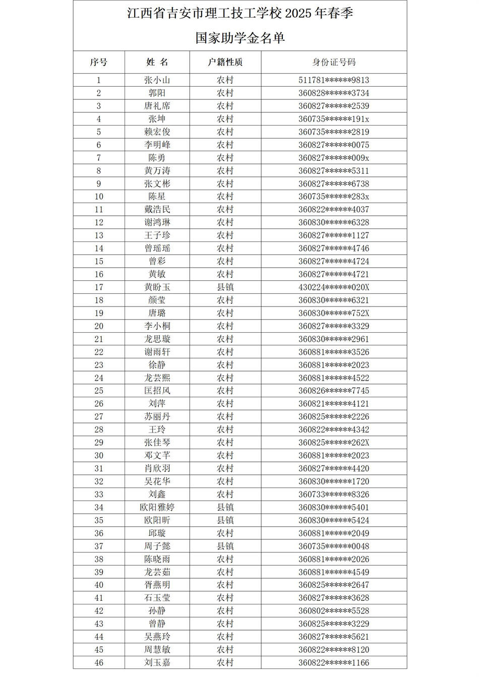 2025年春季學(xué)期我校22級助學(xué)金申報(bào)124人,23級助學(xué)金申報(bào)66人,24級助學(xué)金申報(bào)151人,具體申報(bào)名單見以下,公示日期為4月2日至4月12日。如有疑問請于公示日期內(nèi)向校紀(jì)檢監(jiān)察室或省人力資源和社會保障廳職業(yè)能力建設(shè)處反映。